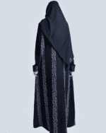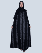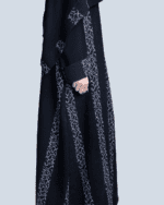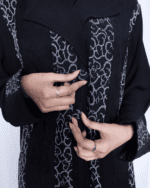 عباية بقصة قطرية سوداء بنقوش على الصدر